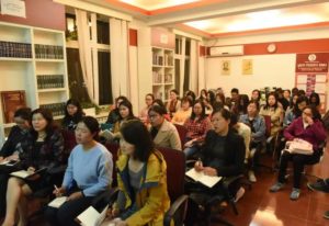 最后,汪老师回答了同学们提出的问题,解答了大家的疑惑。在讲座结束之际,研会同学为汪老师送上鲜花,全体同学与汪老师及戴老师合影留念。
