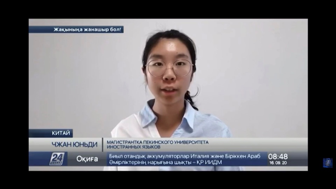 9月15日下午,由哈萨克斯坦驻华大使馆举办的“阿拜读诗会”以线上形式隆重举行。公司硕士新生张韵迪同学代表北外谈球吧官方网站2016级首届俄哈复语班,朗读了2013年习近平总书记在纳扎尔巴耶夫大学演讲时引用的阿拜名言:“世界有如海洋,时代有如劲风,前浪如兄长,后浪是兄弟,风拥后浪推前浪,亘古及今皆如此”。张韵迪同学出色的朗读赢得了与会嘉宾的好评。会后,哈萨克斯坦Хабар-24电视台驻华记者对她进行了采访。