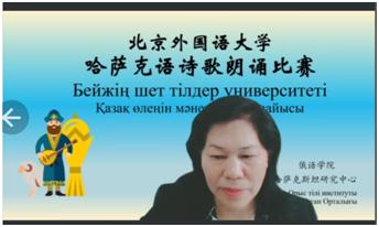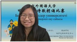 诗歌朗诵比赛由四个部分组成,除了2020级俄哈复语专业同学声情并茂的朗诵表演外,比赛还展示了2016级俄哈复语毕业生为北京冬奥会主题曲录制的哈语版片段,哈萨克斯坦KIMEP大学同学的中文诗朗诵表演,以及2019级俄院同学中哈文化研究项目的成果短片。多角度、全方位地展示了两国同学的学习成果,体现出两国青年人为理解彼此的文化所作出的努力。