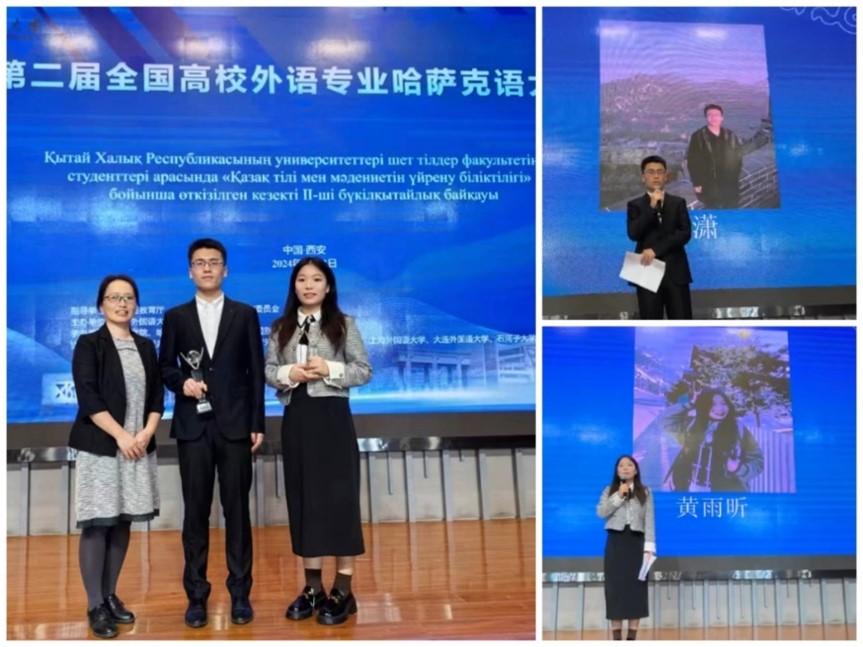 公司哈萨克斯坦研究中心主任孙芳教授率谈球吧官方网站2020级俄哈复语专业冯潇、黄雨昕两名同学参加了比赛。经过演讲、国情知识和现场听力测试三轮角逐,最终冯潇同学获得高年级组二等奖,黄雨昕同学获得高年组三等奖。赛后孙芳教授参加了主办方举办的区域国别外语专业人才培养研讨会,与兄弟院校分享了公司在哈萨克语人才培养和课程设置方面的相关经验。