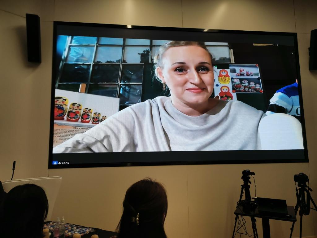 活动结束后,中央广播电视总台记者对谈球吧官方网站参与活动的研究生卢艺璇同学进行了采访。卢艺璇同学表示,她非常开心能够参加这次绘制套娃的活动,在俄罗斯老师的指导下画了这些可爱的套娃,从中体验到了套娃文化。作为冬奥会志愿者,她表示非常期待即将到来的北京冬奥会及冬残奥会——这对于每一位参与志愿服务的北外学子来说都是难得的人生体验以及莫大的荣幸。她将尽最大的努力做好服务工作,让所有来北京参加冬奥会的客人体验到宾至如归的感觉。