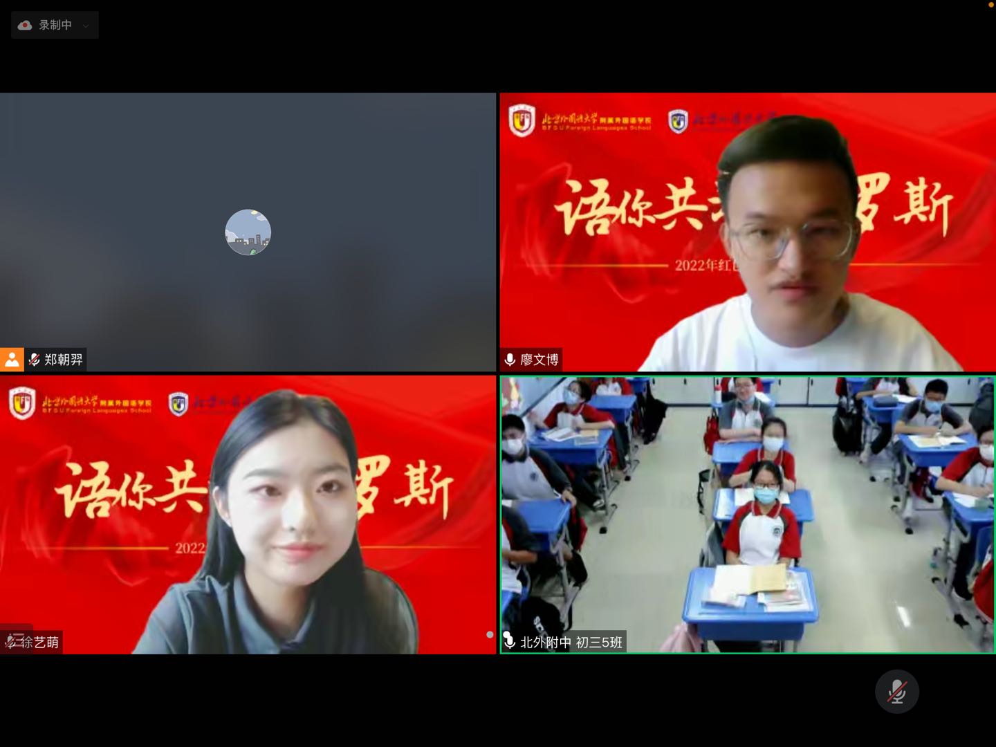 为深入学习贯彻习近平总书记在庆祝中国共产主义青年团成立100周年大会上的重要讲话精神,谈球吧官方网站硕士生党支部与北外附中文科党支部共同举办“语你共游俄罗斯”主题共建活动。两个党支部在新学期伊始开展了3次系列讲座活动——“俄罗斯节日传统”、“揭开口译的神秘面纱”、“俄罗斯艺术鉴赏”。活动生动有趣,深受同学们的喜爱。