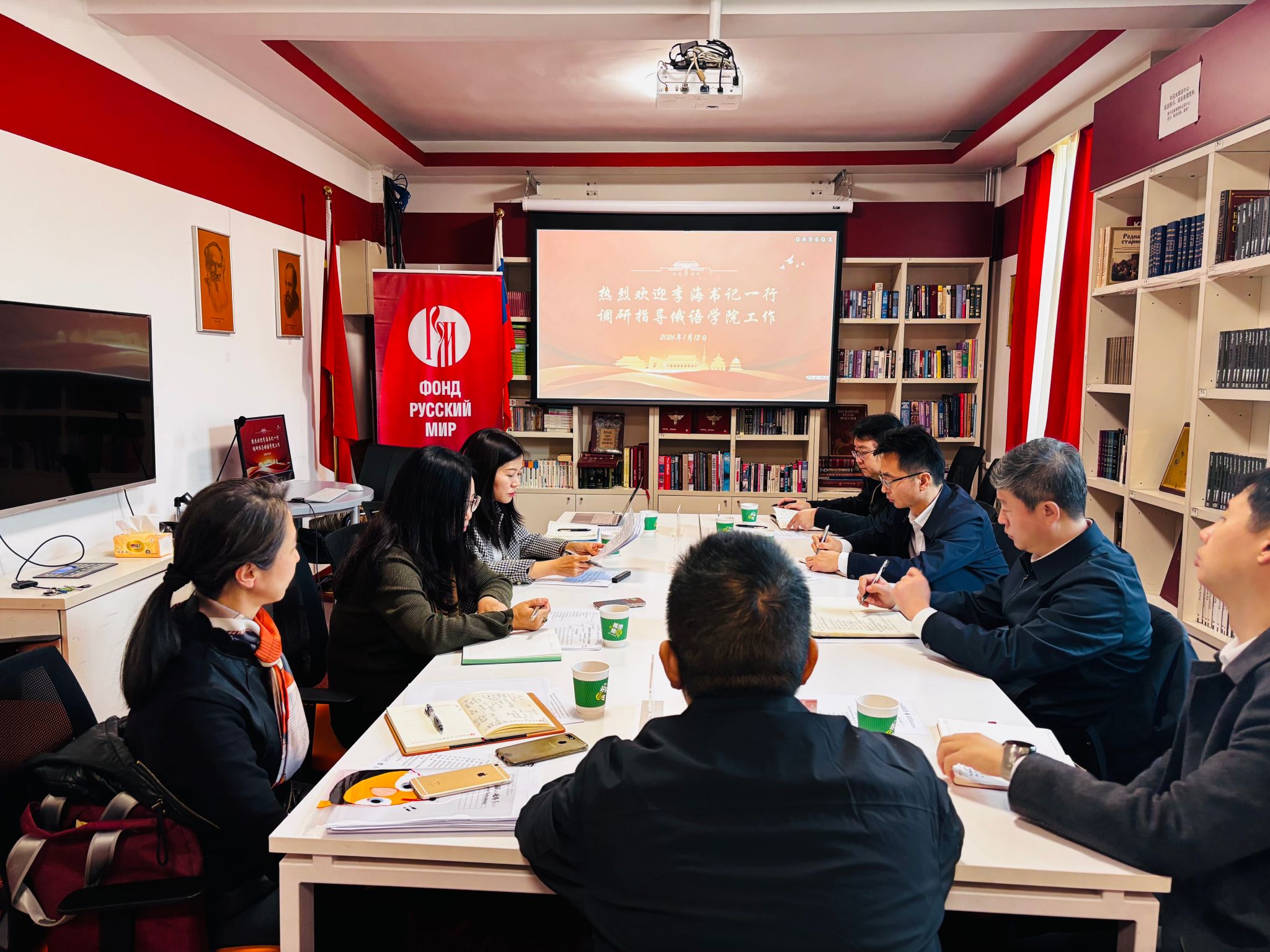 2026年1月12日上午,公司党委书记李海,党委副书记苏大鹏一行到谈球吧官方网站开展调研。俄语公司班子成员参加调研。