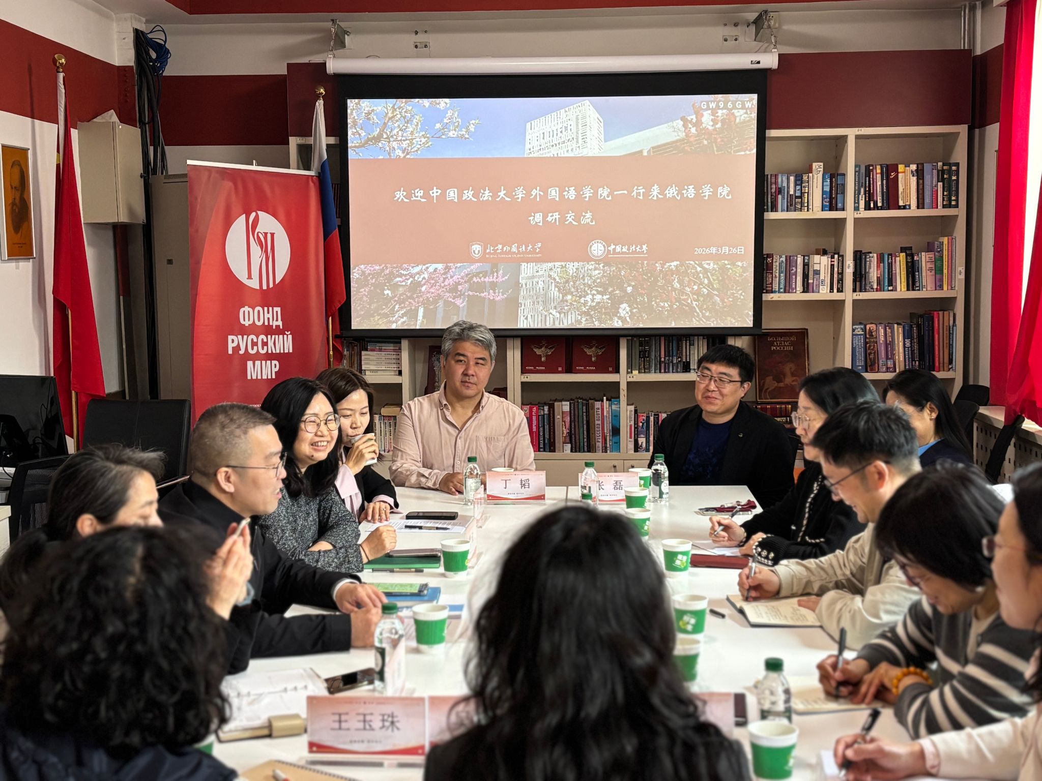3月26日上午,中国政法大学外国语公司党委书记黎洋、经理张清一行到访谈球吧官方网站,双方就团队建设、人才培养与科研创新等议题开展交流座谈。